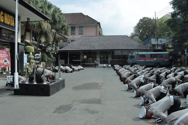 Cảnh sát thành phố Malang quỳ đầu xuống để xin lỗi các nạn nhân