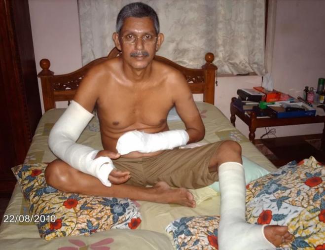 Giáo sư Joseph bị những thành phần cực đoan chém đứt ĺa bàn tay trái, tay phải và chân bị thương nặng. Ảnh: BBC.