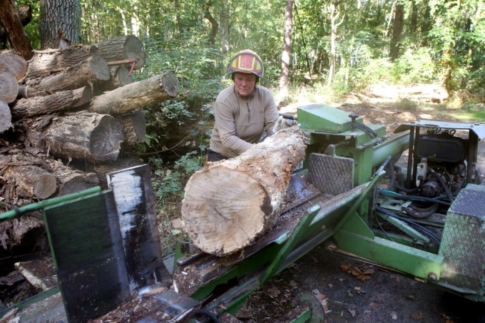 Một nhân viên xẻ gỗ lấy củi tại thủ đô Berlin, Đức, ngày 9/10. Ảnh: AFP.