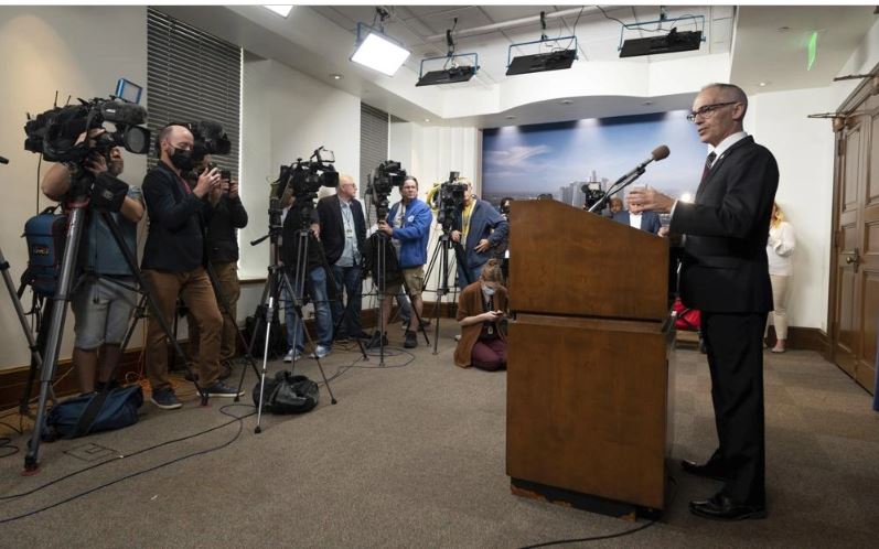 Quyền Chủ tịch Hội đồng Thành phố Los Angeles Mitch O'Farrell phát biểu trước giới truyền thông vào ngày 13/10/2022. Ảnh: AP.