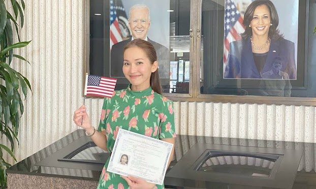 Từ ngày chính thức là công dân Mỹ, Kim Hiền cho biết cô cảm thấy tinh thần thoải mái, đầu óc lạc quan hơn. bớt hẳn những áp lực sống của trước kia.
