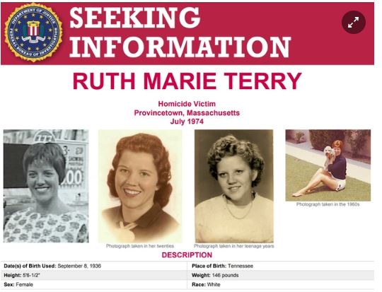 Theo website của FBI, vào ngày 26/7/1974, bà Terry được phát hiện tử vong tại một cồn cát tại bờ biển Cape Cod ở Provincetown, bang Massachusetts.