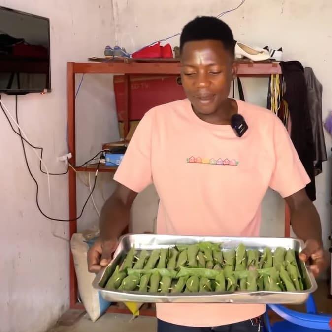 Lindo cho biết, ở châu Phi không có sẵn lá lốt nên đã phải đi xin của một người Việt Nam có trồng lá lốt trong nhà. Anh chàng lần lượt trộn thịt với gia vị, tiêu, nước mắm Việt Nam rồi lấy lá lốt bọc lại. Hoàn thiện được một khay đầy ắp chả, Lindo quyết định mang ra sạp hàng ngoài chợ với giá 50 Kwanza/cái (gần 3.000 đồng).