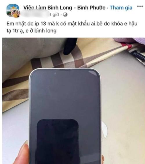Cụ thể, một cô gái đã đăng tải bài viết trong Hội việc làm Bình Phước, chia sẻ thông tin rằng mình đã nhặt được chiếc iPhone 13, cần tìm người mở khoá. Ngay lập tức, bên dưới phần bình luận đã có hàng người khuyên cô nên trả lại cho chủ nhân chiếc điện thoại này.