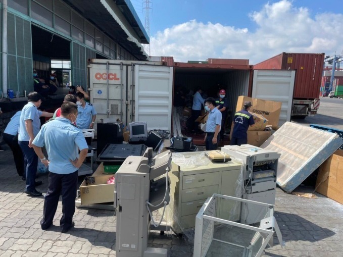 Hải quan TP HCM phát hiện container hàng điện máy cũ nát (cấm nhập khẩu), tháng 7/2021. Ảnh:Quốc Thắng