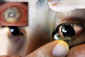 Hậu quả của sơ suất tưởng như rất nhỏ này là giác mạc bị nhiễm trùng nặng, gây mù.