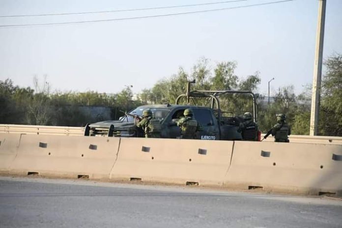 Các thành viên của quân đội đối đầu với các tay súng dân sự ở Nuevo Laredo, Tamaulipas. Ảnh: Twitter