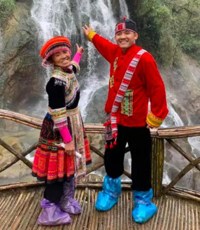 Khoảnh khắc ghi lại, 2 mẹ con bà Tân đã diện trang phục truyền thống của người Mông, đứng chụp ảnh lưu niệm tại một thác nước. Họ cũng nở nụ cười cực tươi khi hướng về phía ống kính máy ảnh.