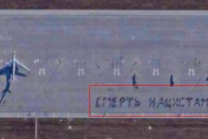 H́nh ảnh vệ tinh mới nhất về căn cứ Engels ở vùng Saratov (Nga) là ḍng chữ tiếng Nga viết trên sân đỗ của máy bay tại căn cứ này, với nội dung “Cầu cho lực lượng Quốc xă chết đi”.Ngay sau khi h́nh ảnh vệ tinh này được công bố, nó đă nhanh chóng lan truyền rộng khắp trên mạng xă hội. Thông điệp này đă tái khẳng định quan điểm bấy lâu nay của Nga về mục đích “chiến dịch quân sự đặc biệt” của họ tại Ukraine, đó là nhằm “phi Quốc xă hóa” Ukraine.