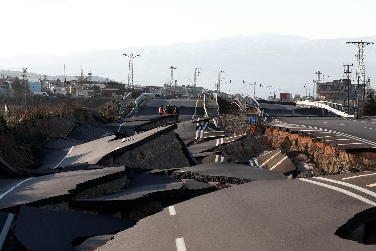 Đoạn đường D420 bị hư hại do động đất ở Demirkopru, Thổ Nhĩ Kỳ hôm 8/2. Ảnh: Reuters.