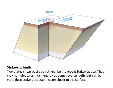 Đứt gãy trượt ngang. Loại đứt gãy này có thể không giải phóng nhiều năng lượng như một số loại đứt gãy trượt nghiêng, nhưng sức tàn phá có thể nặng nề hơn bởi diễn ra gần bề mặt hơn. Ảnh: Reuters.