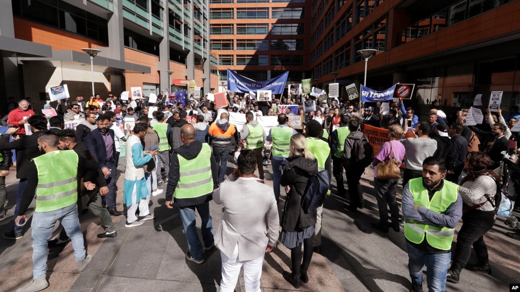 Hàng trăm người biểu tình tập trung bên ngoài văn phòng Bộ Di trú ở Sydney, Úc, vào ngày 12/8/2019. Cuộc biểu tình nhằm nêu bật tương lai không chắc chắn của nhiều người tị nạn kể từ khi Úc thay thế thị thực bảo vệ vĩnh viễn bằng thị thực tạm thời.