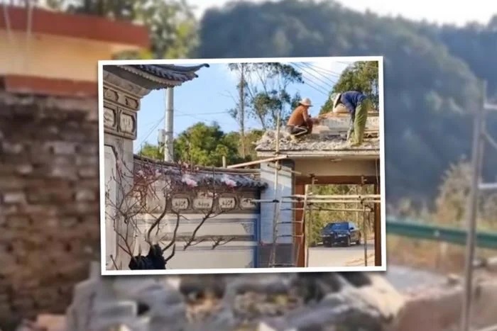 Gia đình này hy vọng việc xây lại cổng chính sẽ mang lại may mắn về hôn nhân cho cậu con trai 25 tuổi.