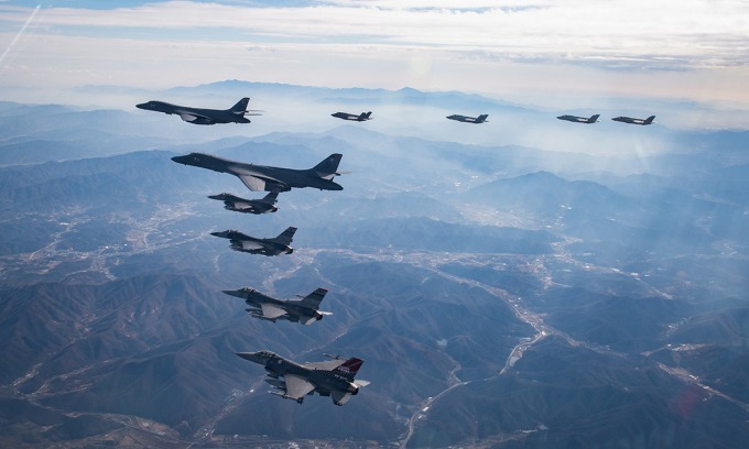 Hội đồng Tham mưu trưởng Liên quân Hàn Quốc (JCS) ngày 19/2 thông báo tổ chức diễn tập chung với không quân Mỹ. Trong cuộc diễn tập, tiêm kích F-35A và F-15K Hàn Quốc cùng F-16 Mỹ hộ tống oanh tạc cơ B-1B tiến vào vùng nhận dạng hàng không (ADIZ) của Hàn Quốc. Chưa rõ số lượng oanh tạc cơ B-1B tham gia diễn tập.