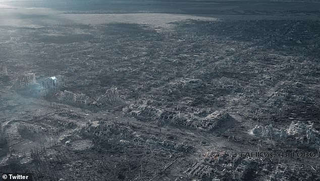 Cảnh quay bằng máy bay không người lái gần đây cho thấy quy mô tàn phá trong thành phố, trong khi Zelensky nói rằng nó đã bị "phá hủy".