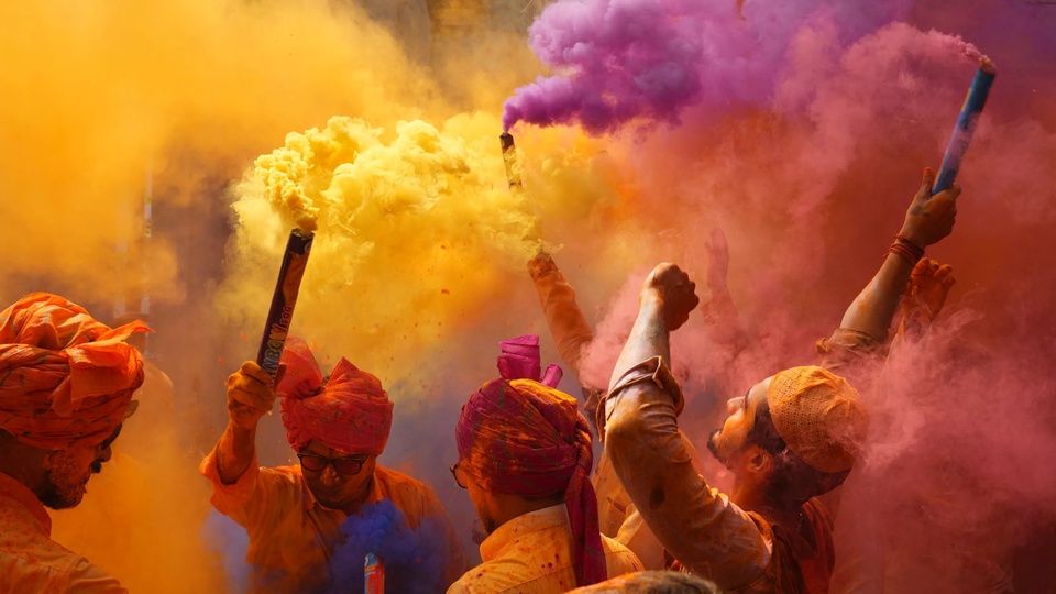 Lễ hội Holi là một lễ hội mùa xuân của người theo đạo Hindu ở Ấn Độ. Mọi người sẽ ném bột màu vào nhau. Ảnh: India Times.