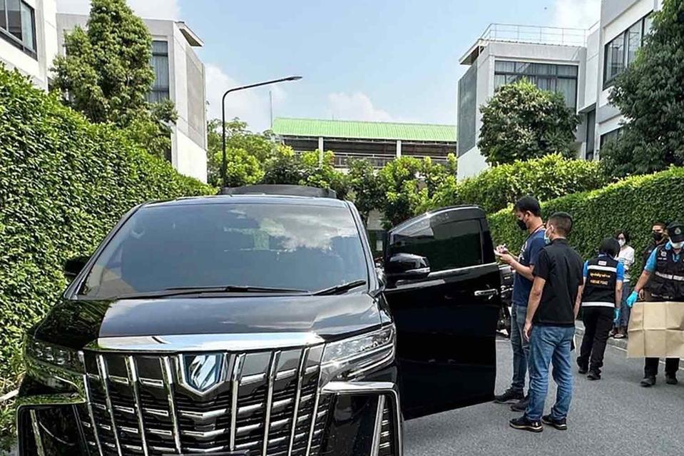 Cảnh sát Thái Lan khám xét chiếc xe các nghi phạm dùng để gây án. Ảnh: Bangkok Post.