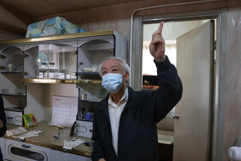 Joseph Ng đứng trong một căn hộ của ông ở Mong Kok. Ảnh: K. Y. Cheng.