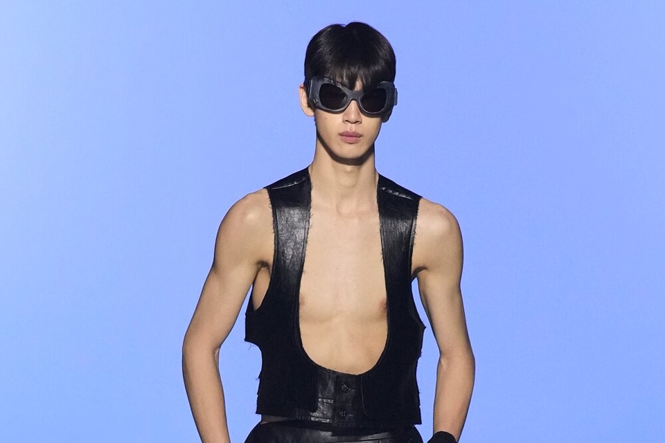 Gần một nửa người mẫu của thương hiệu để lộ da thịt trong loạt trang phục lưới, trong suốt. Các chàng trai tự tin sải bước trên sàn catwalk, khoe cơ bắp, cơ thể săn chắc.