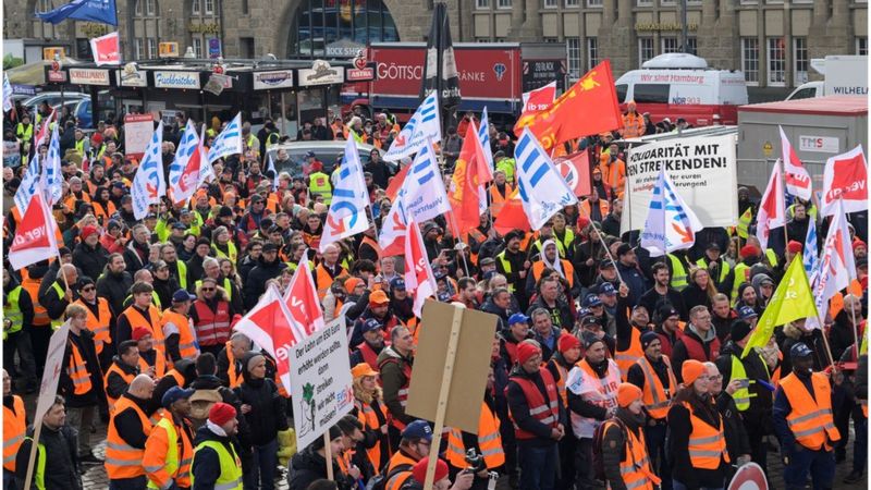 Không chỉ đình công, công nhân viên tại Đức còn xuống đường biểu tình.