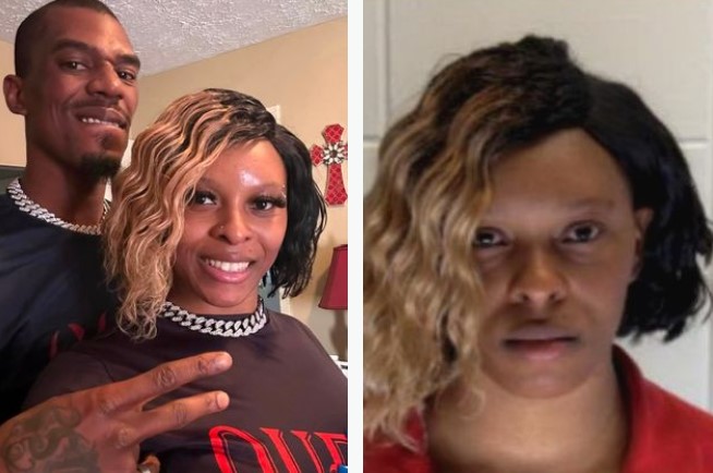 Nghi phạm Kadejah Michelle Brown và nạn nhân Jeremy Roc Brown (ảnh trái), nghi phạm khi bị bắt (phải)