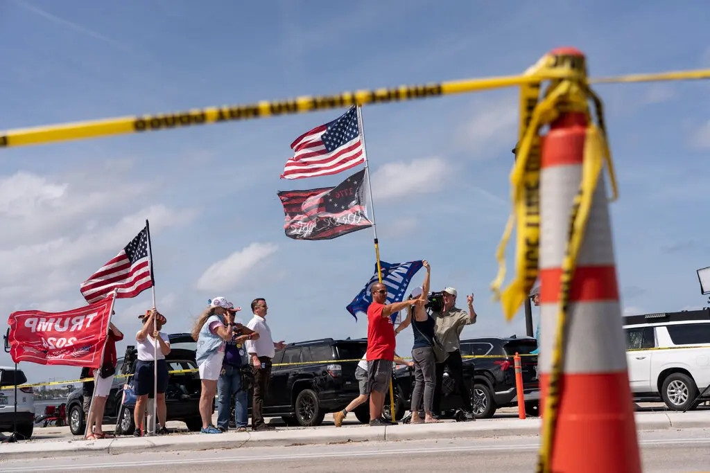Những người ủng hộ Trump bên ngoài dinh thự Mar-a-Lago, tại Florida, hôm 31/3. Ảnh: New York Times.