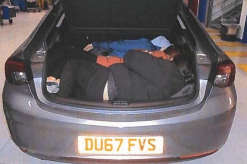 Người nhập cư trái phép trong cốp xe của nhóm buôn người từ Pháp vào Anh. Ảnh: Bộ Nội vụ Anh