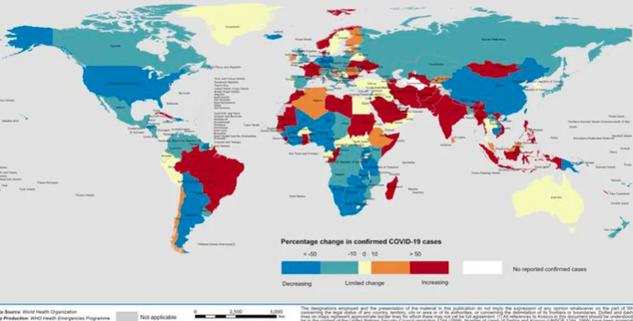 Bản đồ thể hiện sự thay đổi về tỉ lệ số ca mắc mới - Ảnh: WHO