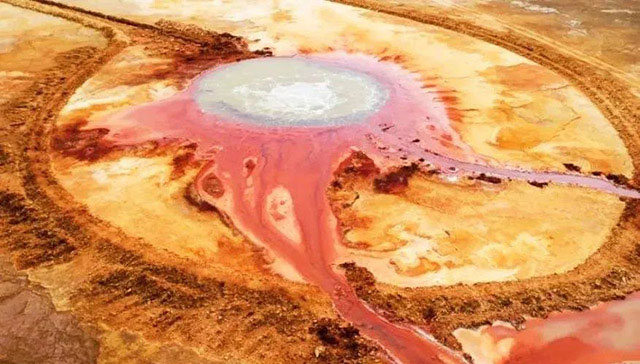 “Mắt quỷ” dưới chân núi Côn Lôn khiến nhìn thấy cũng sợ hãi. Nếu bạn nhìn từ trên cao, nơi này giống hệt như một con mắt khổng lồ đỏ rực rất bí hiểm.