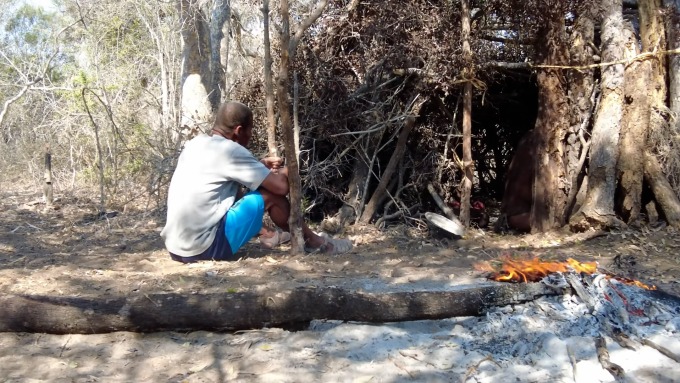 Gần tới nơi, từ xa, Noah đã thấy vài người Mikea đang đứng bên ngoài. Khẽ nghe tiếng động lạ, họ lập tức chui lại vào trong túp lều. Sau khi người hướng dẫn của Noah thuyết phục, những người rừng này mới chịu chui ra nói chuyện. Do cửa lều thấp, họ bò lồm cồm để ra ngoài.
