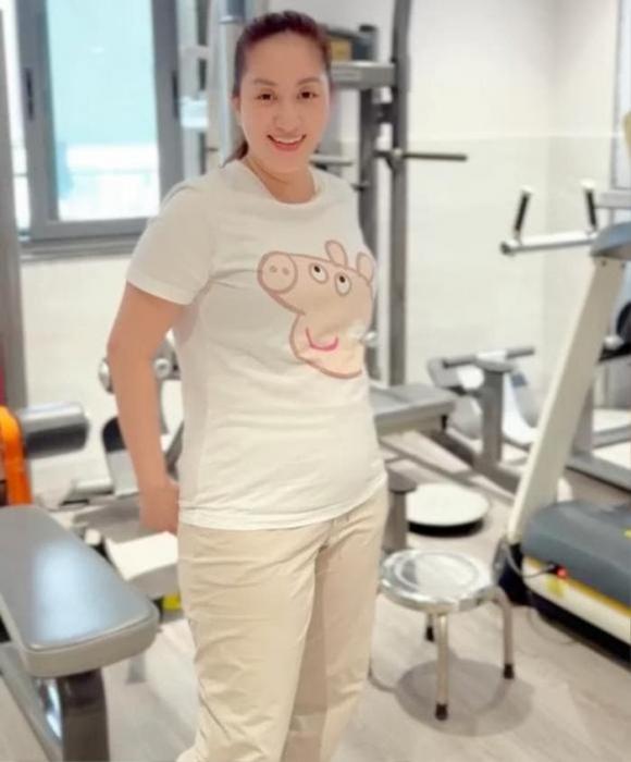 Tiếp đó, Khánh Thi vui vẻ chia sẻ chuyện bị Phan Hiển dụ giảm cân: "61kg rồi. Cũng gần 3 tháng sau sinh nên được chồng cho tập giảm cân. Mình còn xin lười vài tháng nữa chứ. Tại giờ mới vui và ăn thấy ngon".