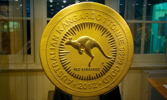 Đồng xu vàng lớn nhất thế giới là đồng kangaroo Australia nặng một tấn do nhà máy đúc tiền Pert ở bang Tây Australia sản xuất năm 2011.