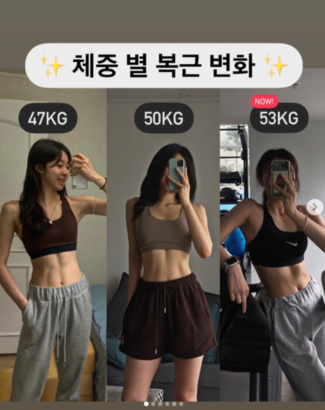 Cô gái - Won Min hiện đang là một blogger người Hàn có niềm đam mê với luyện tập và ăn uống để “độ” dáng. Cô nàng cao 1m63, cân nặng trong 3 năm qua dao động từ 47-53kg song luôn bảo toàn vòng 2 phẳng lỳ, săn chắc đáng ngưỡng mộ.