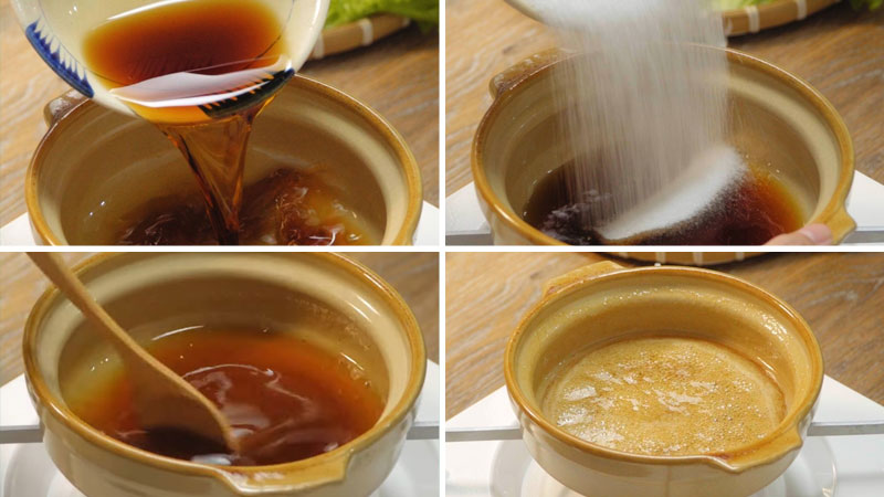 - Bạn cho vào nồi 2 chén nước mắm, 2 chén đường rồi đun ở mức lửa nhỏ, cho đến khi đường tan hết rồi bạn tắt bếp để cho nước mắm nguội.