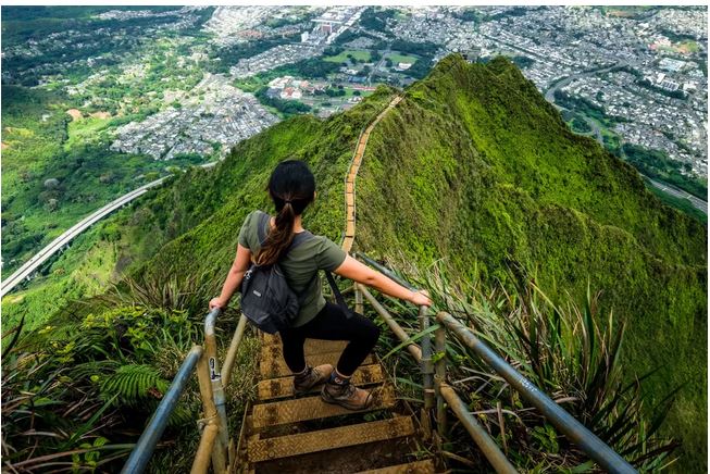Cầu thang Haiku có 3.922 bậc trải dọc theo con đường núi dài khoảng 853 mét ở Kaneohe, phía đông Oahu.