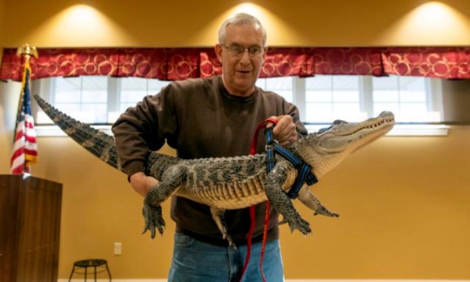 Ông Henney ôm cá sấu Wally tại nhà riêng ở Pennsylvania, Mỹ, năm 2019. Ảnh: AP