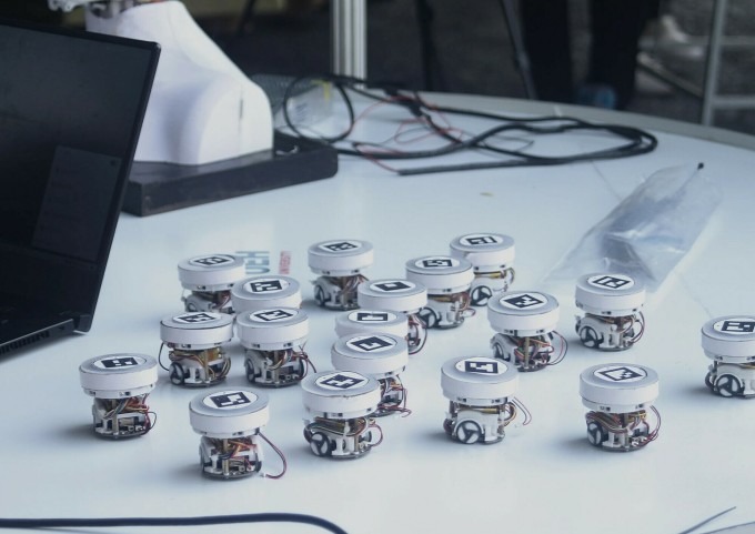 Robot bầy đàn do các sinh viên Viện Công nghệ thông minh và Tương tác UEH nghiên cứu, chế tạo, trưng bày tại Ngày hội tư vấn tuyển sinh hướng nghiệp 2024. Ảnh: UEH