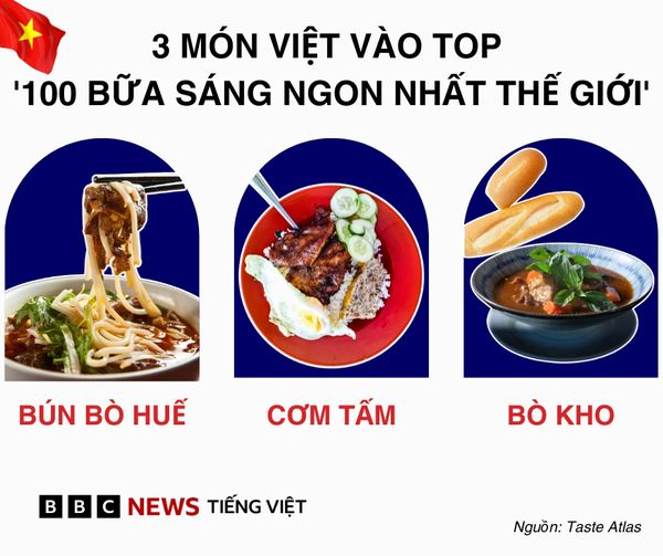 3 món ăn Việt Nam của Việt Nam vừa được tạp chí ẩm thực quốc tế Taste Atlas bình chọn Top 100 bữa sáng ngon nhất thế giới năm nay.