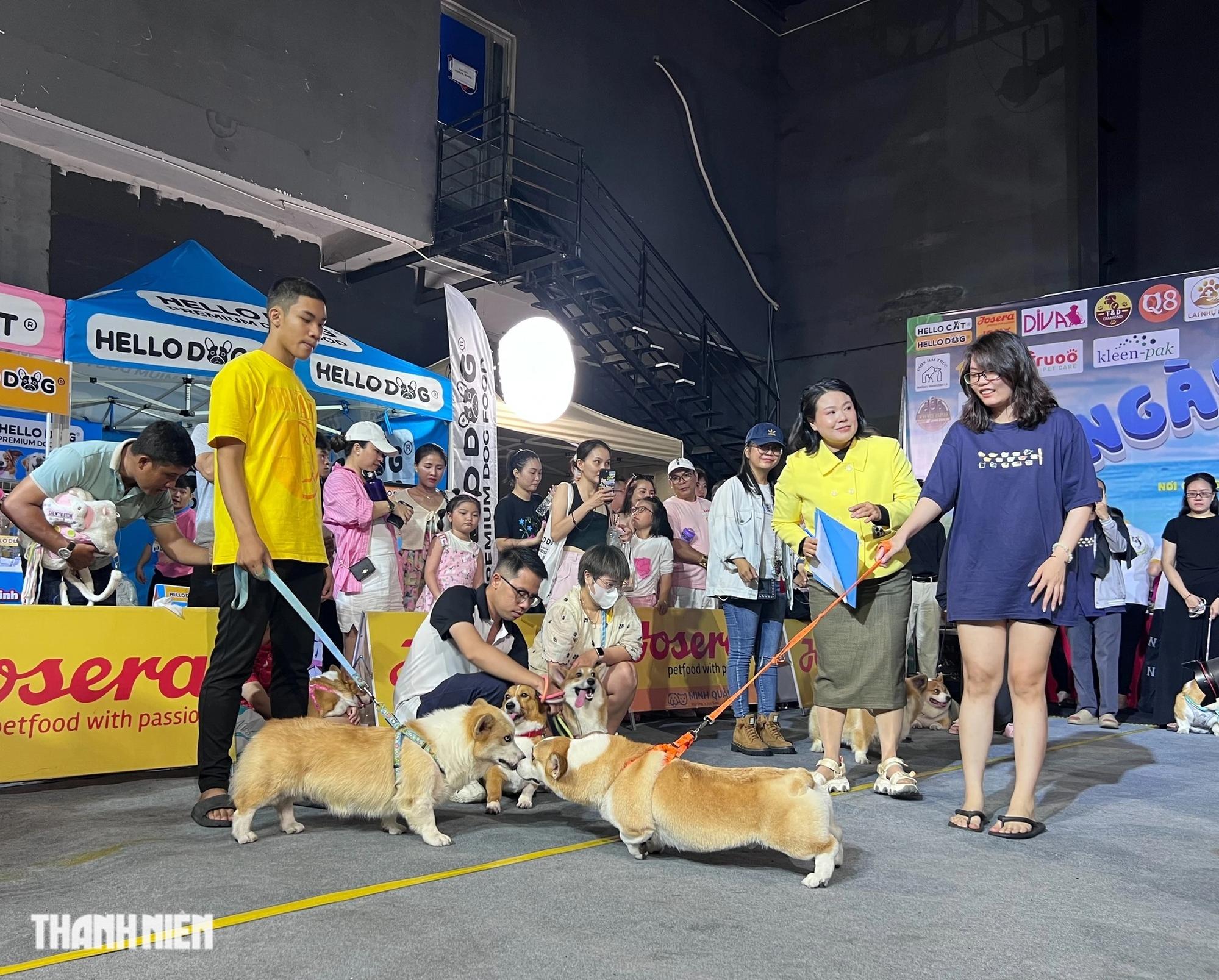 Những chú chó Corgi được chủ nhân dẫn đến dự thi hạng mục chó đẹp. BGK xét giải dựa trên những tiêu chí như: lông mượt, móng được cắt tỉa gọn gàng, khung xương, hộp sọ, sự thân thiện...