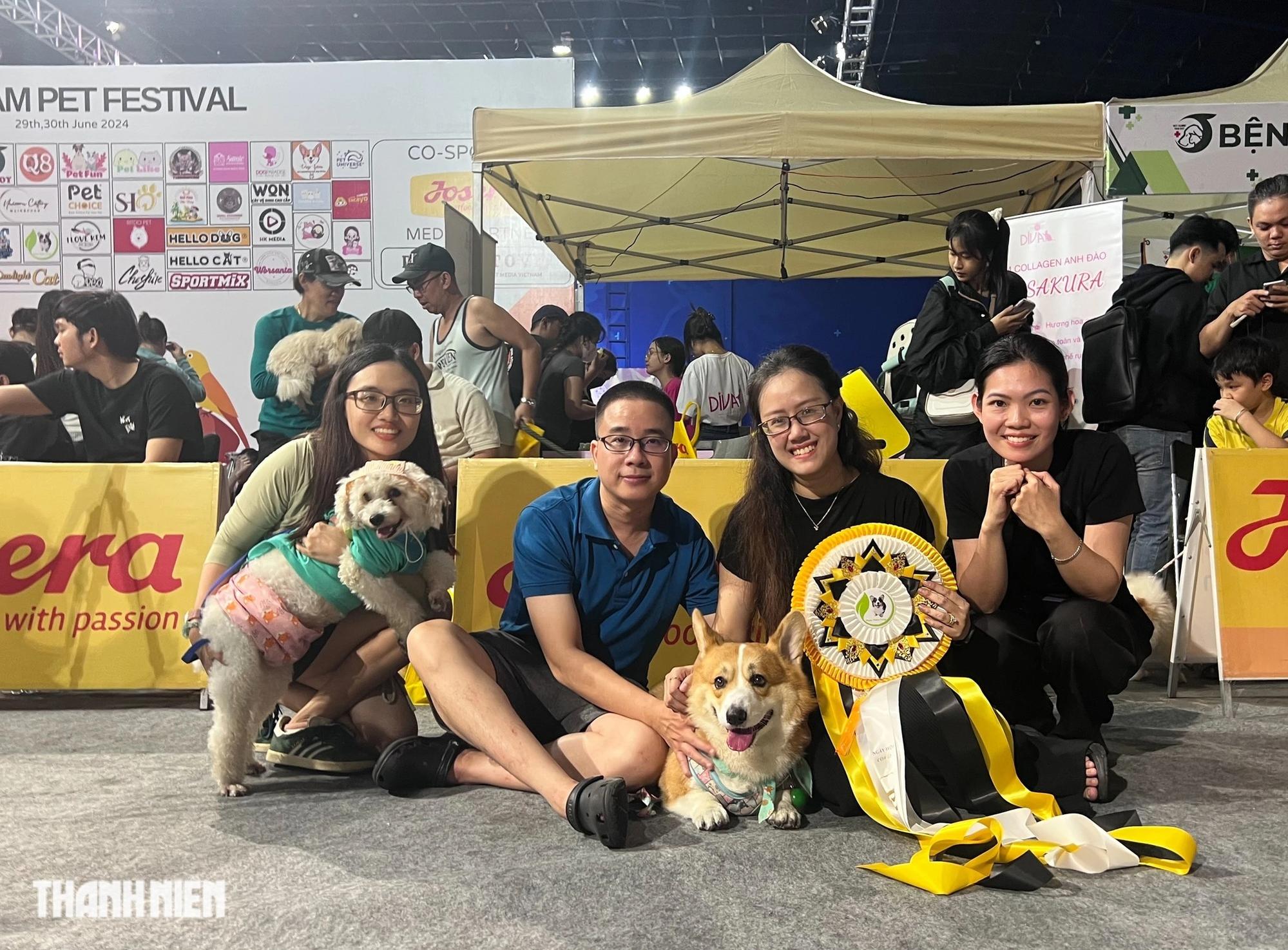 Gia đình chị Đức Hạnh (Q.Bình Thạnh) hộ tống chú chó cưng đến tham gia cuộc thi chó và vỡ oà khi giành được giải chó Corgi đực đẹp nhất. "Đây là lần đầu tiên tôi dẫn chó tham gia ngày hội, không khí hôm nay rất đông vui. Tôi xem chó cưng như một thành viên trong gia đình nên chăm sóc và dành nhiều yêu thương", chị Hạnh chia sẻ.