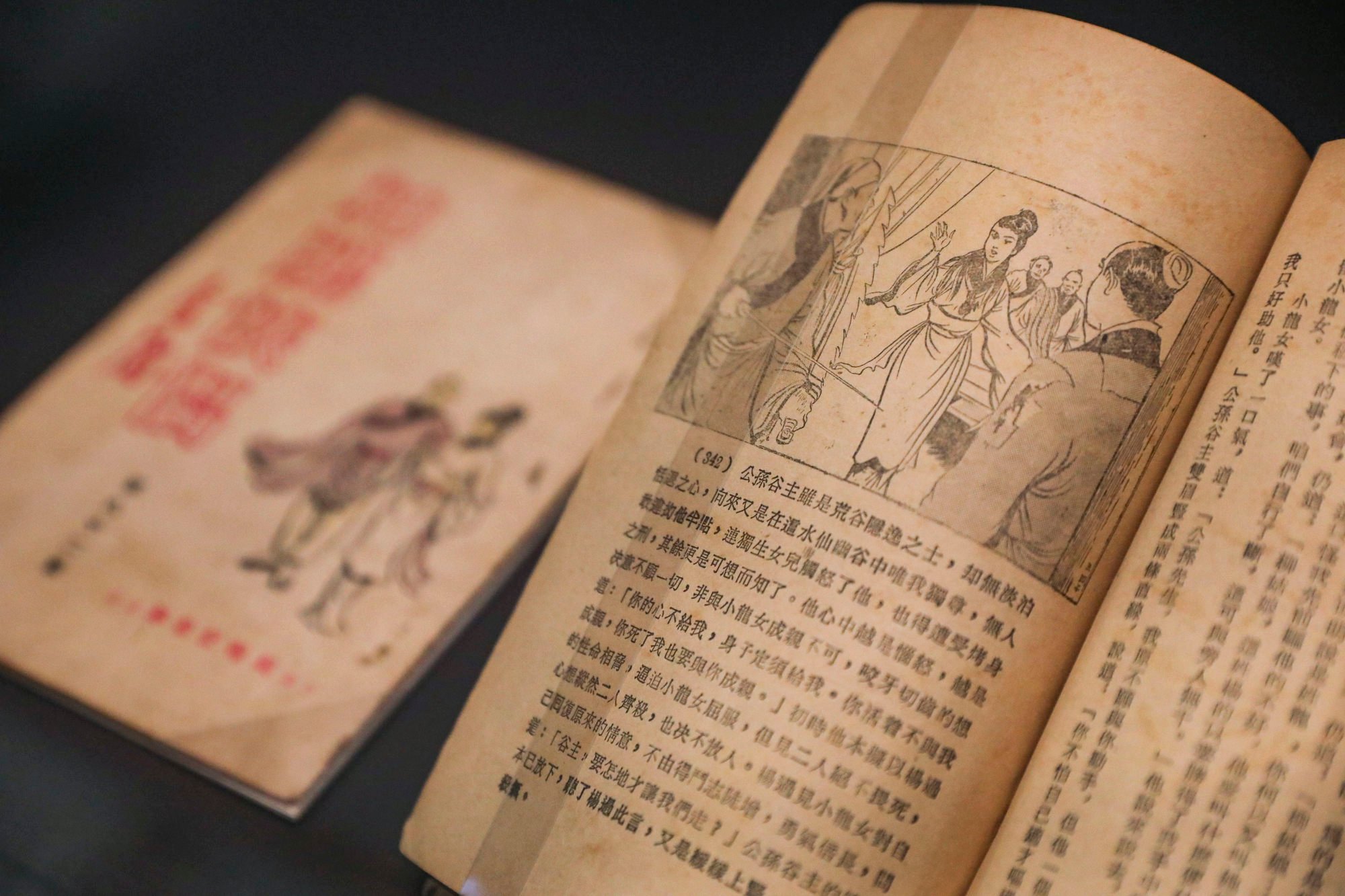 Ấn bản bìa mềm của "Thần điêu đại hiệp" (1959) của Kim Dung được trưng bày tại Phòng trưng bày Jin Yong thuộc Bảo tàng Di sản Hồng Kông. Ảnh: Nora Tam
