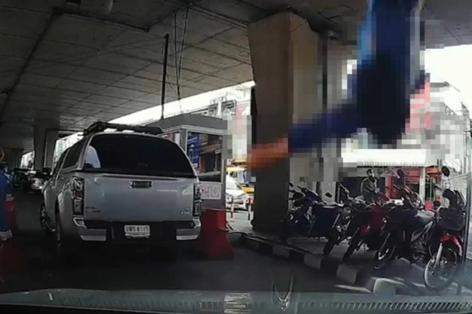 Đang đỗ xe trên đường ở tỉnh Nonthaburi, Naphat Sookmak, 23 tuổi, hốt hoảng khi thấy một phụ nữ trung niên rơi xuống nắp capo rồi bất tỉnh.