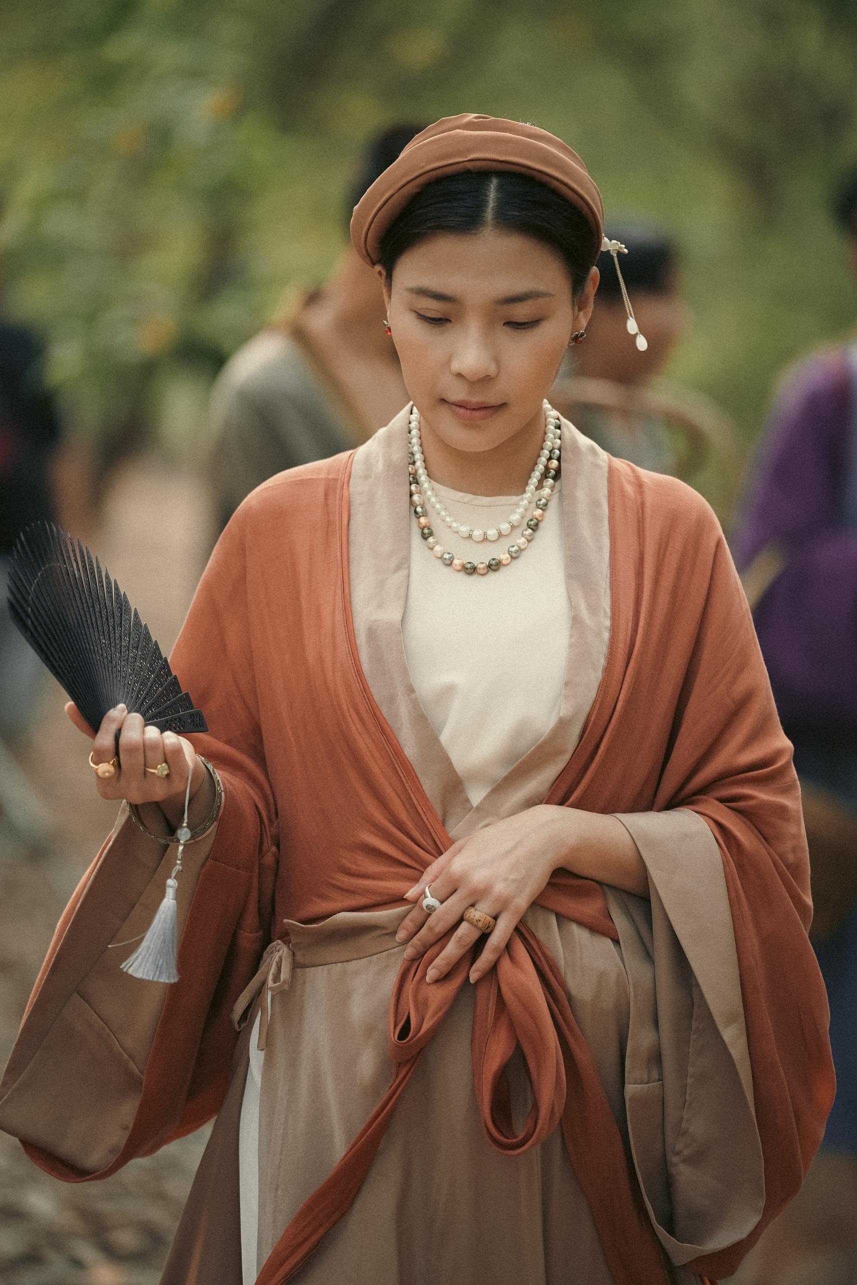 Bộ trang phục trong ngày đi hội của Bà Kế là sự kết hợp của áo tứ thân tay thụng, tràn vạt, đeo thêm trang sức ngọc, tà tích, tay cầm quạt. Tất cả những chi tiết này được nghiên cứu từ trang phục của phụ nữ đi hội thời Nguyễn, đồng thời được NSX tham khảo từ các chất liệu dân gian như tranh Đông Hồ, tranh Làng Sình của người Việt.