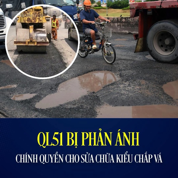 Ngày 8-10, cơ quan chức năng đã tạm đóng một làn đường quốc lộ 51 để thi công, sửa chữa đoạn xuống cấp trầm trọng, đầy 'ổ gà, ổ trâu' nguy hiểm. Đáng nói, đơn vị thi công đã bóc tách lớp nhựa ở một số vị trí và trải nhựa đường nóng lên, chứ không sửa chữa theo từng đoạn.