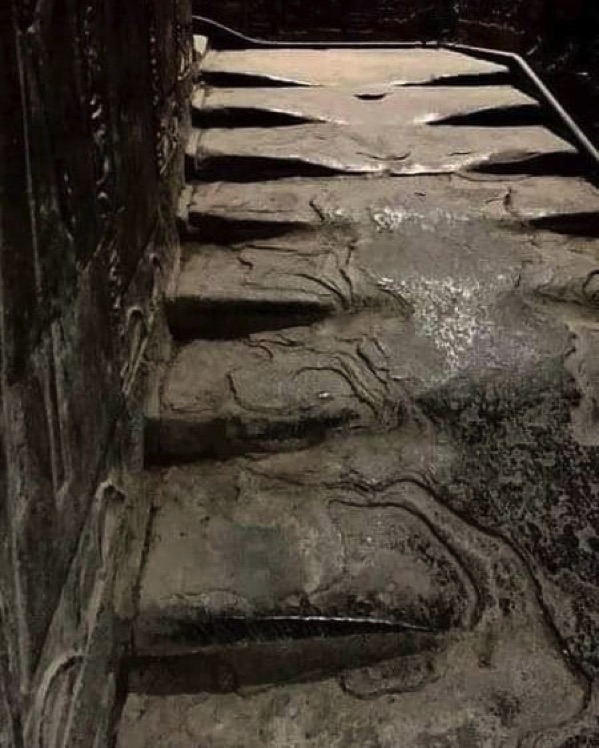Bậc thang dẫn lên Đền Hathor, nằm ở Ai Cập, vẫn là một bí ẩn hoàn toàn đối với các nhà khảo cổ học. Những bậc thang này đă bị tan chảy một cách kỳ lạ, điều mà khoa học chưa thể giải thích được, bởi chúng được xây dựng từ đá granite rắn chắc. Khi xem xét kỹ lưỡng, có thể thấy rằng sự hư hại của các bậc thang này không thể là do xói ṃn hay hao ṃn tự nhiên.