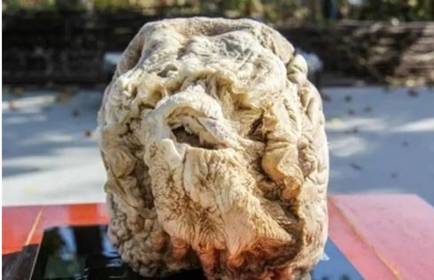 Một ngày nọ, trong lúc đang đào móng nhà, người đàn ông họ Chu sống ở một ngôi làng thuộc tỉnh Liêu Ninh, Trung Quốc bất ngờ phát hiện vật giống với hình dạng của một tảng đá. Tuy nhiên, như cầm lên thì ông lại nhận thấy "tảng đá" này thực ra bên trong lại khá mềm và xốp tựa bông. Sau khi đem cân thì "tảng đá" kì lạ chỉ nặng 10 kg.