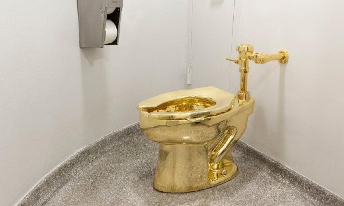 Một sản phẩm khác của Maurizio Cattelan là chiếc bồn cầu làm từ vàng 18K, trị giá 4,8 triệu bảng, có đầy đủ chức năng, mang tên Nước Mỹ. Hiện vật được trưng bày tại triển lãm trong Cung điện Blenheim ở Woodstock (Anh). Khách đến tham quan nơi đây có thể đặt chỗ để sử dụng toilet ba phút với số lượt giới hạn.