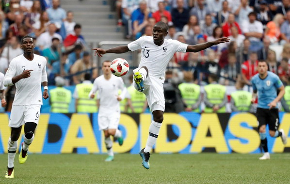 Đội Pháp áo trắng, Uruguay áo xanh da trời.