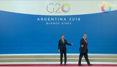 Một cảnh tức cười được ghi nhận diễn ra tại G20. Đó là cảnh Tổng thống Argentina muốn Trump ở lại trên sân khẩu để chụp ảnh nhưng người đồng cấp Mỹ không hiểu ý và bỏ đi khiến ông bối rối.