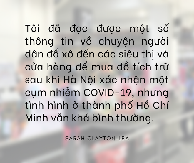 Người phụ nữ, Sarah Clayton-Lea là nhà đồng sáng lập - giám đốc nội dung toàn cầu của Big 7 Travel chia sẻ rằng, "khác với Australia, Mỹ hay các nước châu Âu, ở đây [thành phố Hồ Chí Minh] không hề có cảnh giành giật đến cuộn giấy vệ sinh cuối cùng".